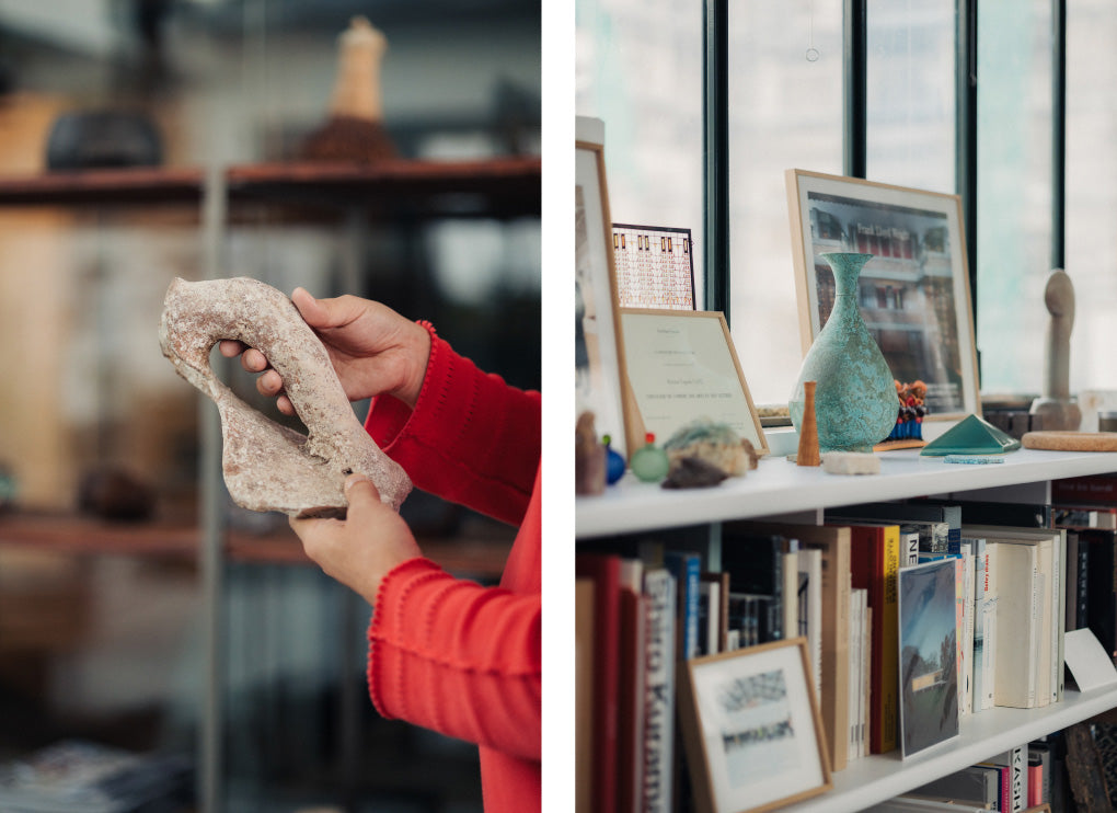 Drawn to the traces of time, Mr. Tane collects antiques. On the shelves and desks of his office, various objects, large and small, are displayed alongside memories from his travels.