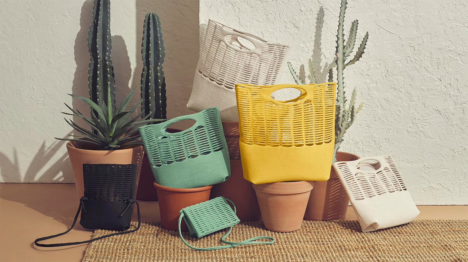 These lightweight, soft knit bags are created from a single thread. They are washable and easy to use, making them ideal for shopping and other scenes in everyday life. The bags also look beautiful placed on a table like a fruit basket, and will blend with your interior decor.