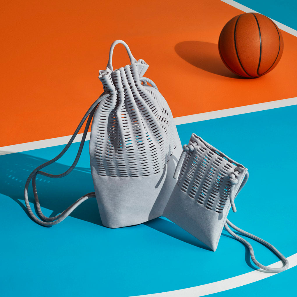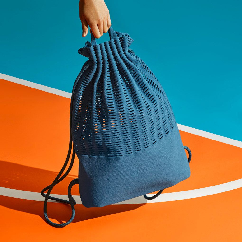 MOKKO KNAPSACK is a series of backpacks, knitted without any sewing that are made using fine mesh and cords fit on shoulders to retain their lightweightness and softness that characterize MOKKO. The series focuses on ease of use for more active situations.