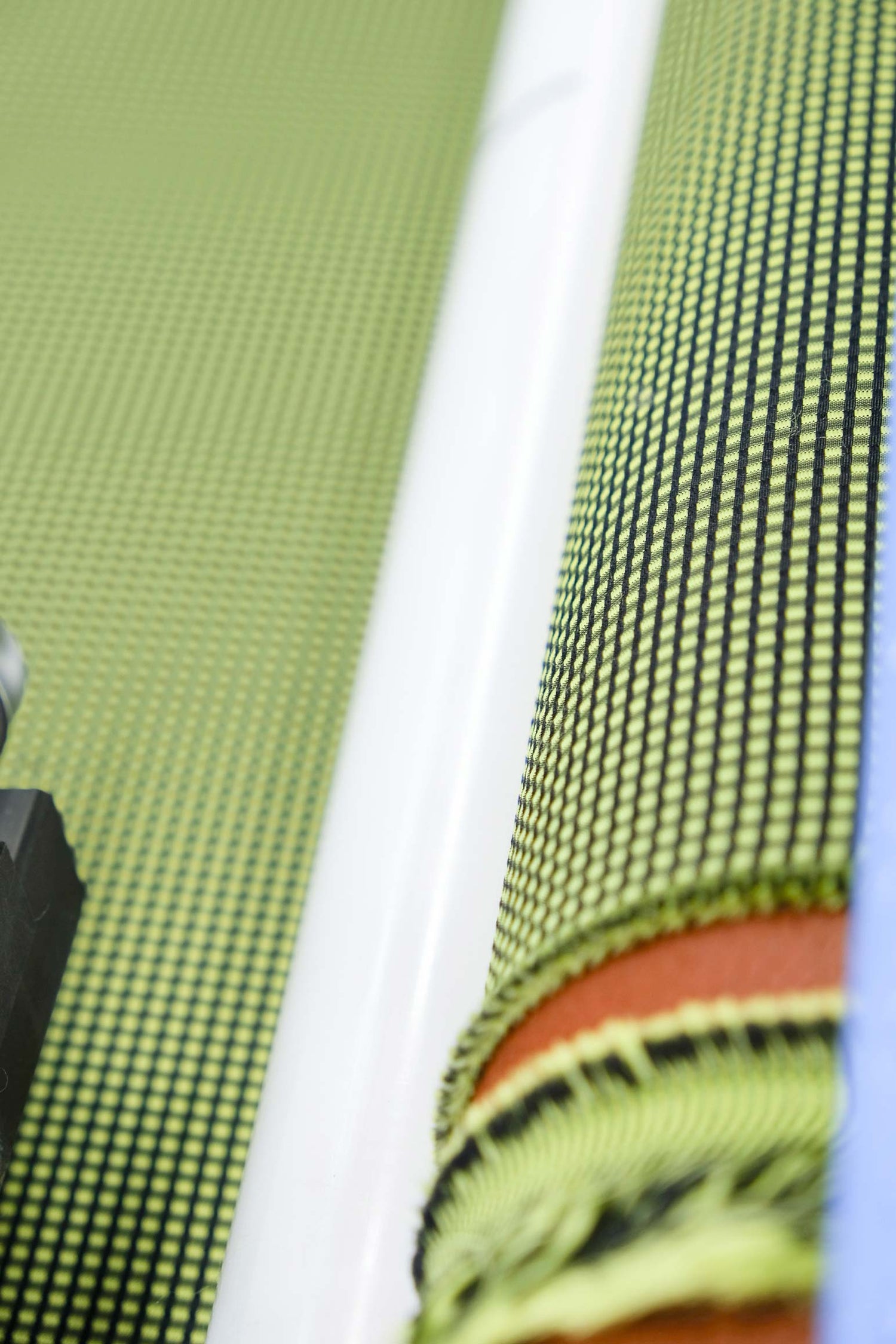 The starting point for LIGHT WEIGHT is the double-layered weave. Unusually, the number of warp threads of black silk is halved and the density of the synthetic weft threads is increased, using a specialized device – resulting in a unique textural effect hovering between lightness and strength.