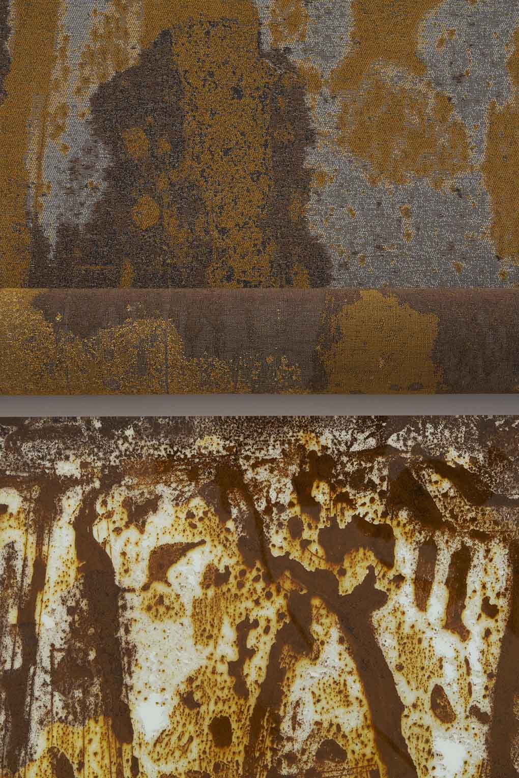 I started my experimental project “Rust Harvest” in 2016. Since then, I have continued to present the results of my research as furniture and interior design products. In the course of this project, I recognized anew the beauty of rust patterns. In the back of my mind, I wondered if I could apply this beauty to some other genre. Amidst this, I came across the aforementioned “painting.” I wondered what could be created by combining this weaving technique with the beauty of rust. At that moment, I began to “imagine creation.”