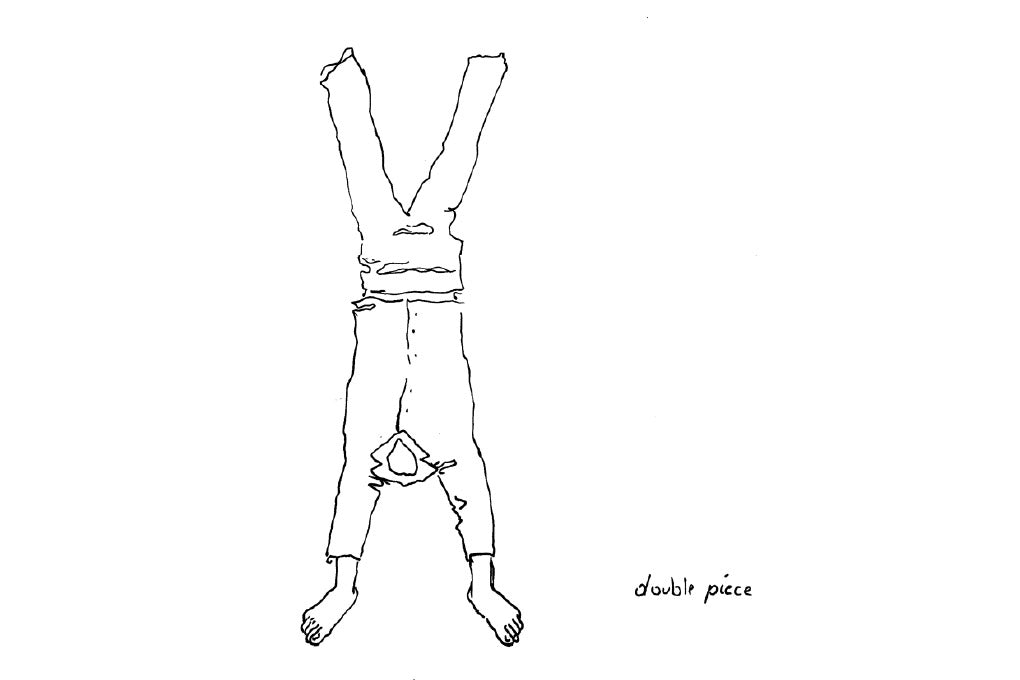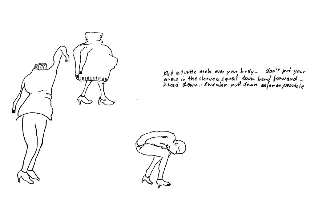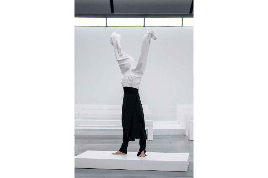 The artist invites the viewer to follow certain instructions to hold a specific and often awkward position for a short amount of time, to become part of the sculpture for a brief moment—blurring the boundary between the observer and the observed. What has inspired the collection [N]either [N]or is the artist’s underlying concept of treating an ordinary thing in an extraordinary way to challenge the viewer’s preconception. On this occasion, ISSEY MIYAKE designer Satoshi Kondo met with Erwin Wurm to further explore the many in-between’s and the ambiguity that exists in them.