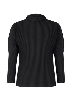 This black pleated top features a straight fit, long sleeves and a fold-over turtleneck.