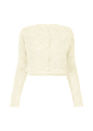 SHIFTED FUZZY PLEATS Cardigan Off-White