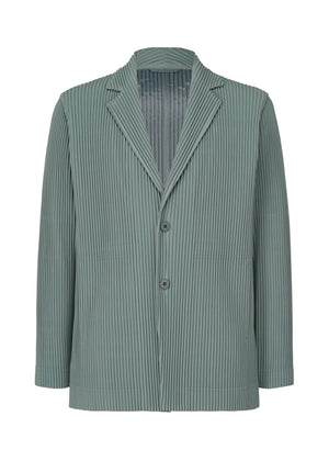 A product shot of the HOMME PLISSÉ ISSEY MIYAKE TAILORED PLEATS 1 jacket in slate blue (71). A detail shot of the HOMME PLISSÉ ISSEY MIYAKE TAILORED PLEATS 1 jacket. A detail shot of the HOMME PLISSÉ ISSEY MIYAKE TAILORED PLEATS 1 jacket. A model wears the HOMME PLISSÉ ISSEY MIYAKE TAILORED PLEATS 1 jacket. A model wears the HOMME PLISSÉ ISSEY MIYAKE TAILORED PLEATS 1 jacket. A model wears the HOMME PLISSÉ ISSEY MIYAKE TAILORED PLEATS 1 jacket.