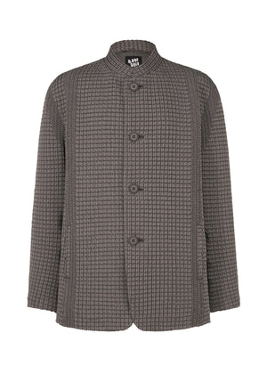 TYPE-O 014 is enhanced by applying grid-style pleating achieved with the 'Steam Stretch' technique, creating a richly textured surface. The intricate pattern of special heat-sensitive threads is woven into each piece of clothing; when steam is applied, three-dimensional forms emerge and the garment is completed.